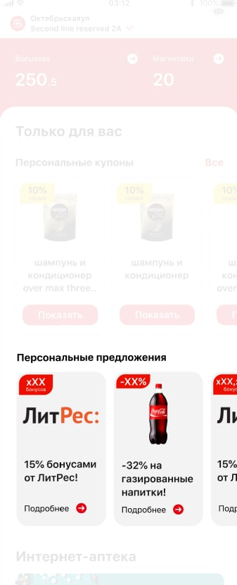 - Сделали диплинки в пушах персональных предложений, персональных купонов, розыгрышах, коллекционных акциях, списке транзакций. Проще говоря, теперь по нажатию на пуш переходишь не просто в приложение, а сразу в тот его раздел, о котором говорилось в пуше.