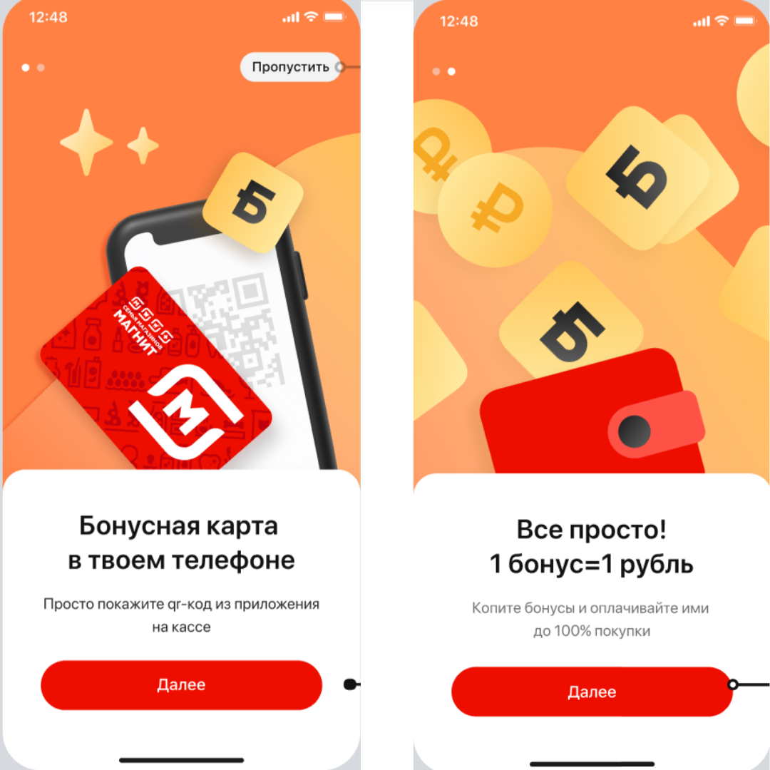 Через пару дней в сторах появится версия приложения с новым онбордингом. Изменения коснулись общей концепции дизайна, на смену красному цвету пришли оттенки оранжевого и желтого.