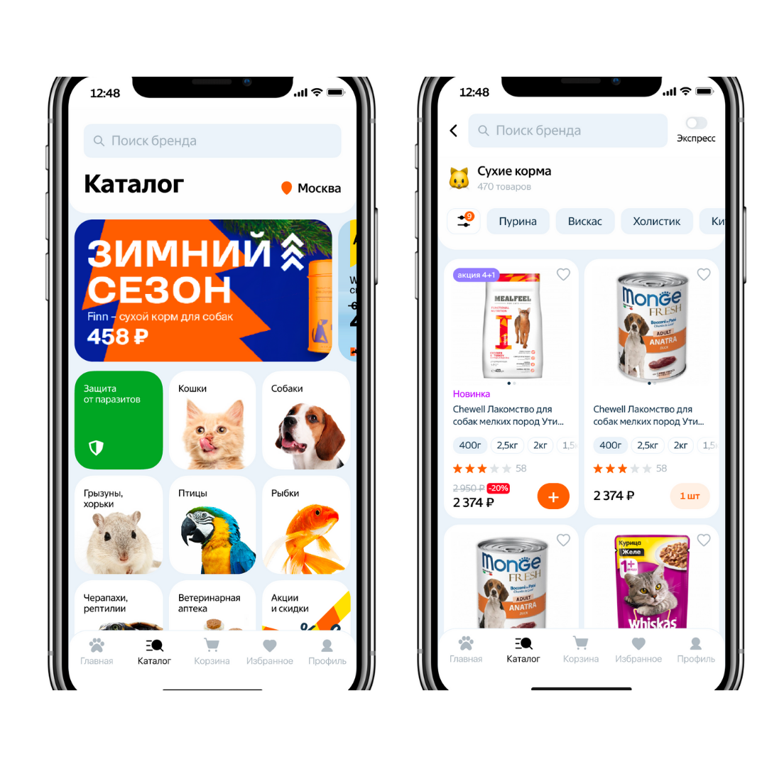 Сделали редизайн интернет-магазин дизайнерской одежды. Изначально у сайта была плохая конверсия из-за плохого UX и странных UI решений. Провели интервью среди заинтересовавшихся респондентов внутри нашей компании. Нашли слабые точки, улучшили текущий UX. | | | | Проект: «Четыре лапы»