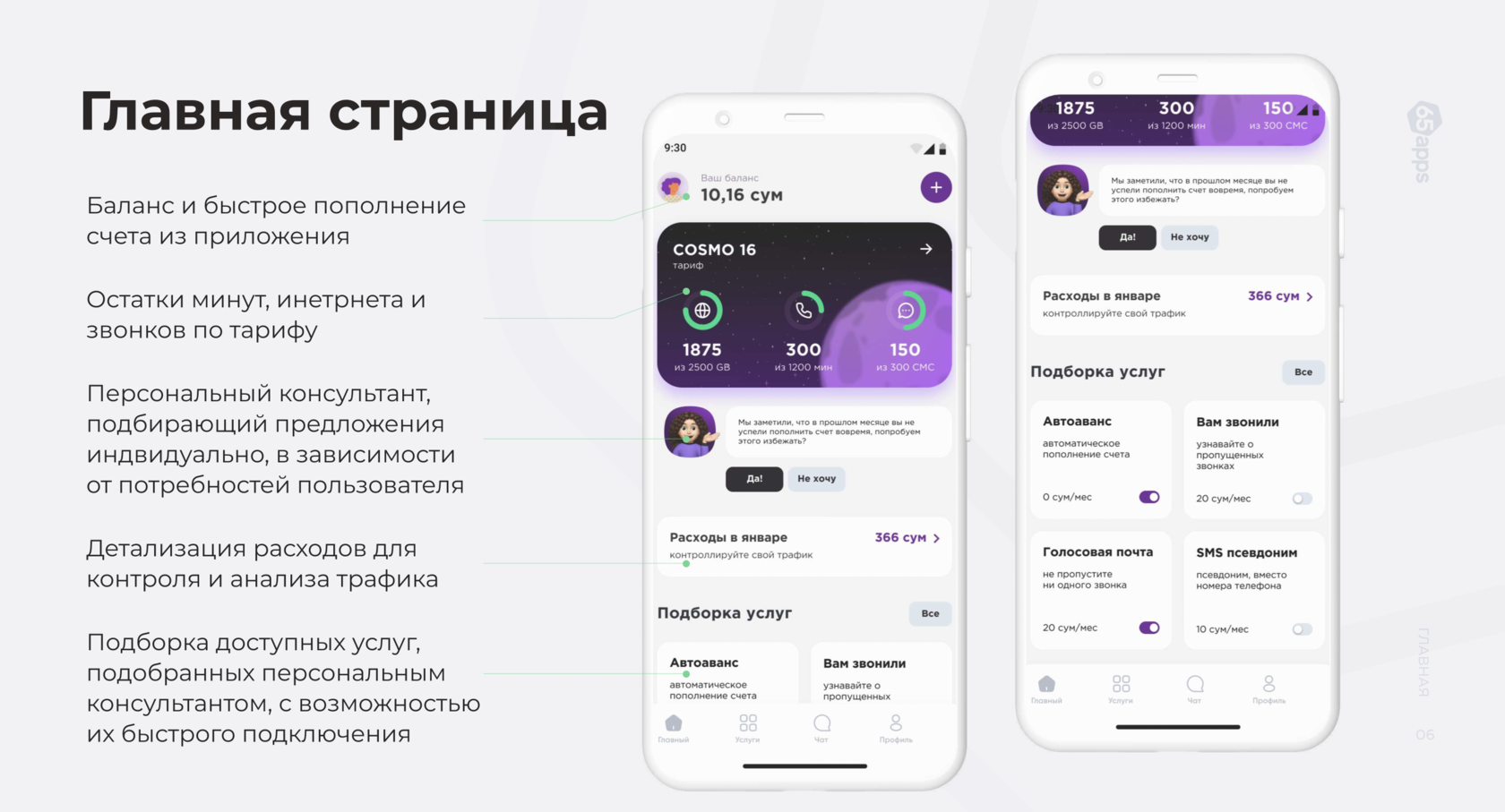 Проект делали 10 месяцев большой командой. Всё под ключ: бэк с проектной нагрузкой в 100 000 пользователей онлайн, хранилище персональных данных согласно требованиям ФЗ-152, интеграции с платежными системами, легкий и стильный дизайн и, конечно, классные мобильные приложения с продуманным и протестированным UX.