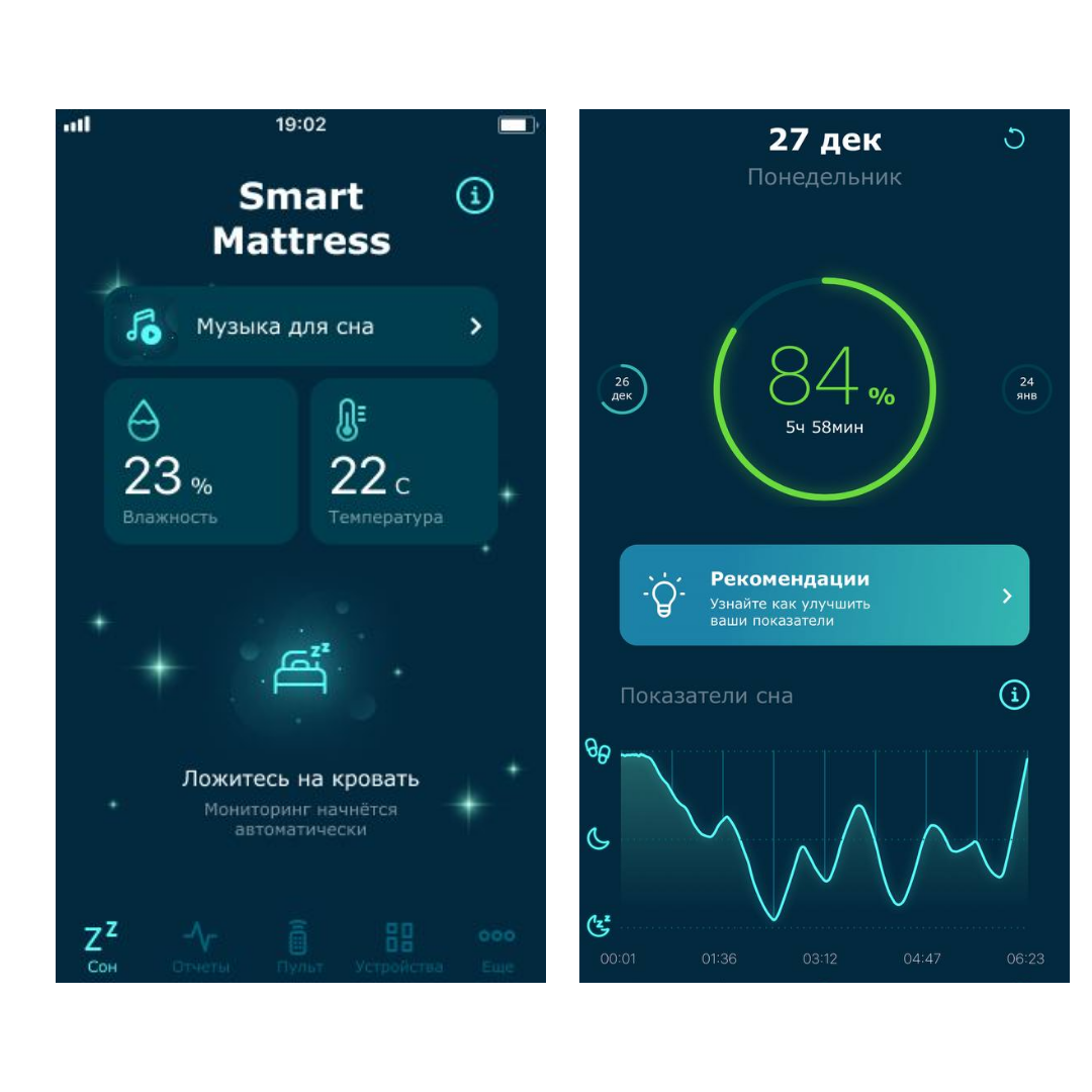 - Добавили возможность управления новым устройством от Асконы - Smart Mattress. Это устройство совмещает в себе возможности Sleep Dot и Smart Pillow и дает более детальные отчеты по сну.