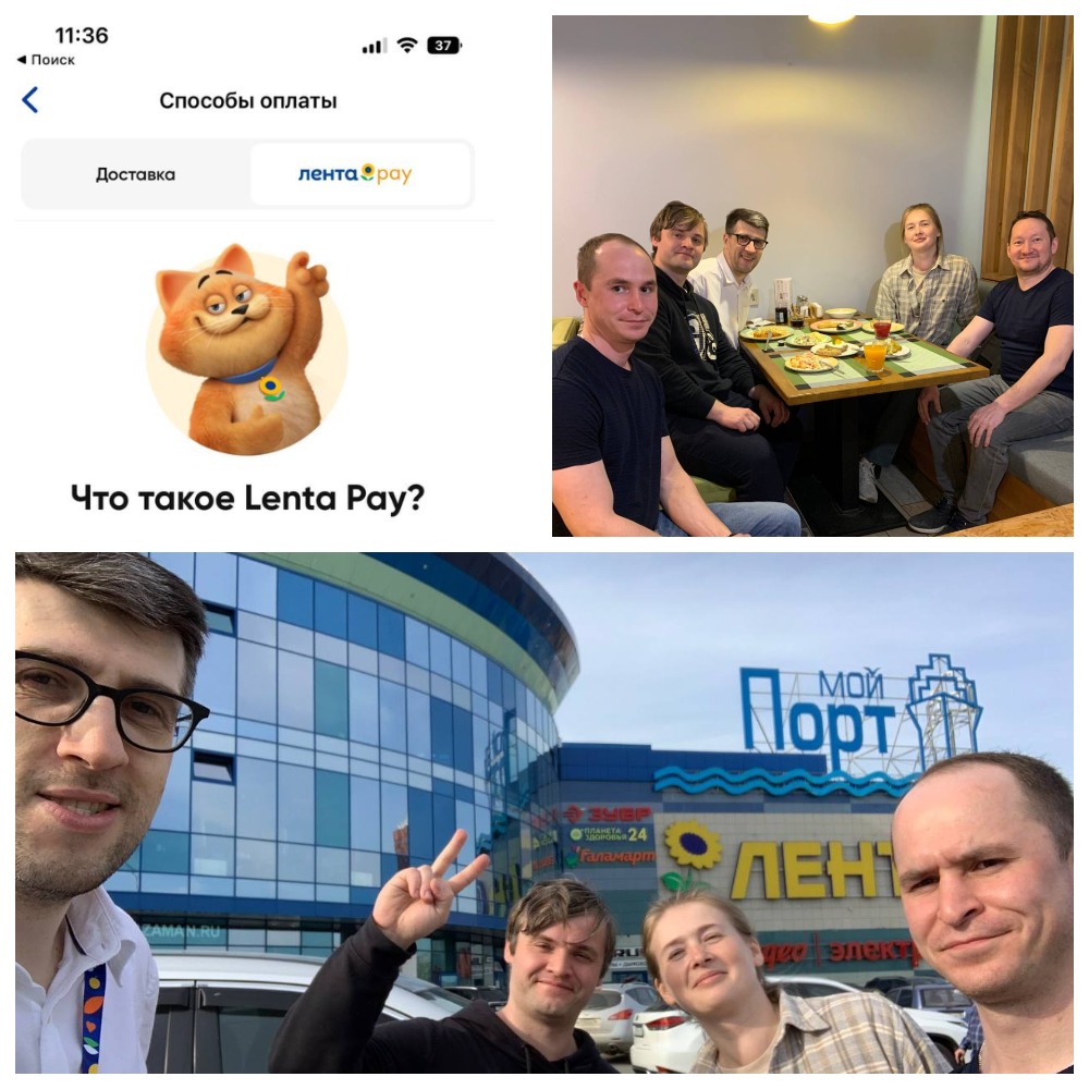 Кстати, в апреле продуктовый менеджер Ленты Давид приезжал в Ижевск запускать сервис LentaPay и повидаться с командой. Android-разработчик проекта из Санкт-Петербурга Антон Урывский тоже не остался в стороне. Целых 3 дня команда общалась и сближалась—смотрите, какие счастливые!
