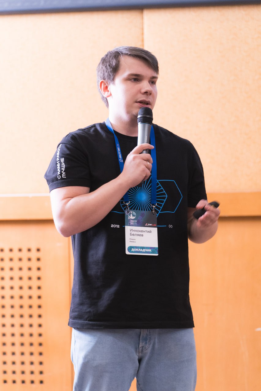 Кеша съездил не просто «людей посмотреть, себя показать», а выступил с докладом: «На Analyst Days рассказал, как мы работали на проекте «Лента» с отзывами пользователей для продакт-аналитиков и менеджеров/владельцев продукта. Выступал я во втором дне под самое закрытие конференции и пока слушал доклады, начал переживать, а придет ли кто-то на мой доклад, правильно ли мы выбрали площадку? Но, как оказалось, зря переживал, половина зала моей секции специально пришла послушать меня :)