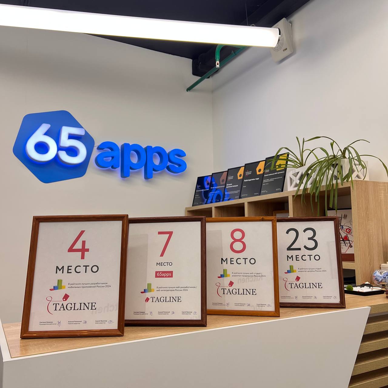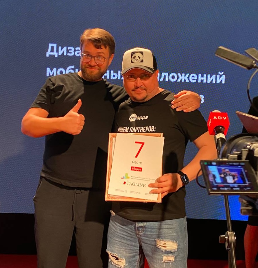 Вот пара архивных фото прошлых лет: | | | | Церемония Тэглайн, 2017 год. Заняли ТОП-5 строку в рейтинге по мобайлу | | | | Церемония Тэглайн, 2019 год. ТОП-3 строка в мобайле наша! | | | | В этом году мы заняли следующие места: | | | | ТОП-7 среди компаний веб-разработки/интеграторов ТОП-23 в Диджитал Дизайне (+4 строчки) ТОП-21 среди лучших аутстафф-разработчиков (+11 строчек) ТОП-4 среди лучших компаний-разработчиков мобильных приложений ТОП-8 среди лучших диджитал-продакшенов | | | | На фото можно наблюдать счастливые лица представителей компании-победителя. | | | | Почему это важно, и мы об этом рассказываем? | | | | В 2023 году лидеры 65apps приняли решение значимо расширить вертикали компетенций компании. Мы всегда отталкивались от потребностей рынка и бизнеса, клиентов и партнеров. В какой-то момент стало ясно, что быть только мобильным продакшеном только в 2-3 доменных экспертизах, например, e-commerce и fintech, нам мало. Это и скучно, и неустойчиво. Пришло время для очередной эволюционной трансформации нашей компании.
